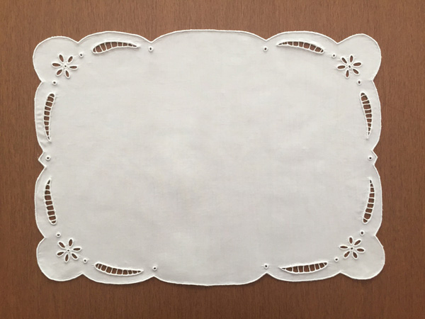 Descrição: FORRO DE BANDEJA BORDADO RICHELIEU Código: FB070A Tecido: Percal Tamanho: 44 x 32 cm Cor: Branco