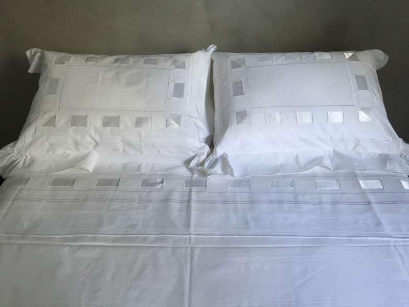 Código: JC004 Conjunto: CASAL 02 Fronhas Bordadas (87 x 70 cm) 01 Virol Bordado (226 x 254 cm) 01 Lençol Liso (226 x 254 cm)