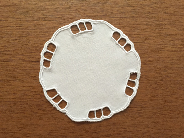 Descrição: JOGO PORTA COPO BORDADO RICHELIEU (6 UNIDADES) Código: PC004 Tecido: Percal Tamanho: ø 11 cm Cor: Branco
